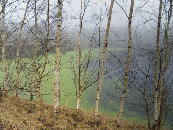 Le terril de Raches. Un sentier qui tournicote entre les bouleaux.