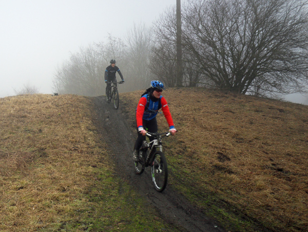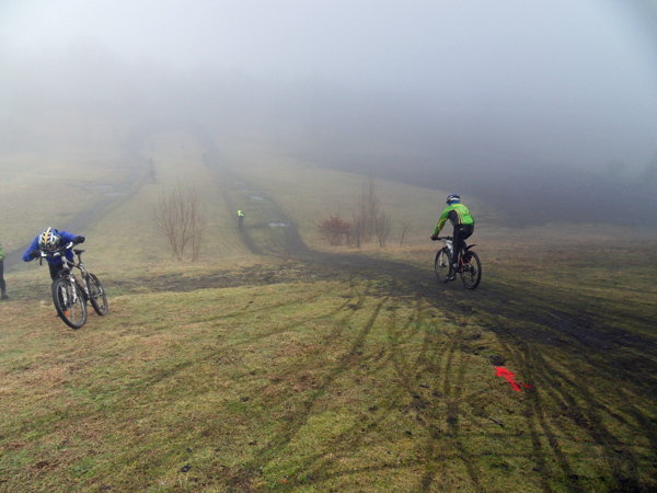 Premier terril, première difficulté, une courte pente raide et boueuse après un virage à gauche.