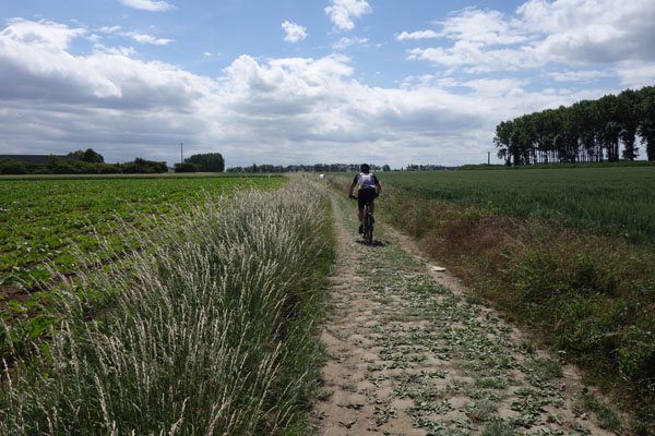 Retour plus direct vers Lille, quittant l’itinéraire menant à Wervik à Bossuit pour suivre l’Escaut jusque Pecq pour ensuite filer en ligne droite à travers la campagne.