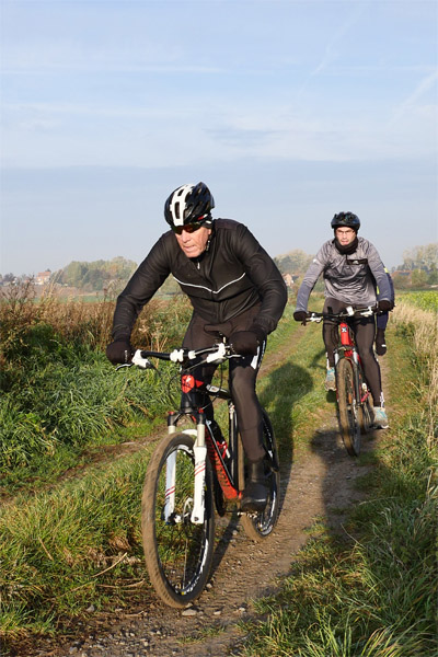 Cyclos, vététistes et marcheurs, chacun sa file.