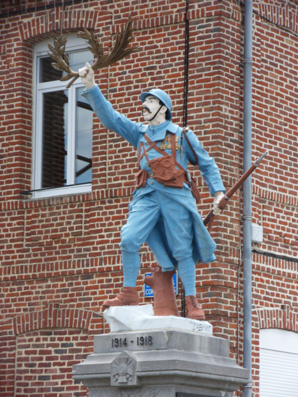 Le monument aux morts de Cattenières et son poilu coloré qui semble sorti d’une bande dessinée de Tardi.