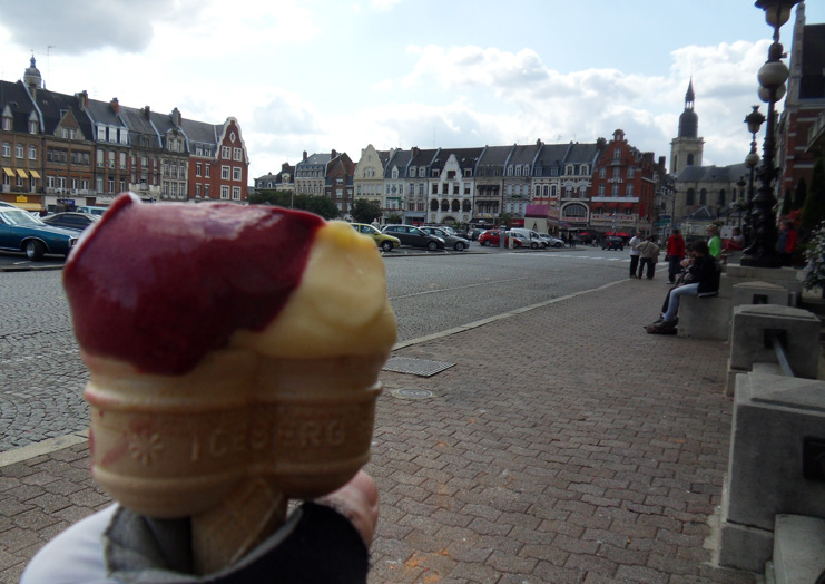 Finalement, ce sera glace (cassis-mandarine) plus train. Je retrouve sur la Grand place une camionnette des établissements Ruiz. Les vendeuses sont mieux loties que leur collègue itinérant, pas de Jingle Bells et de nombreux chalands.