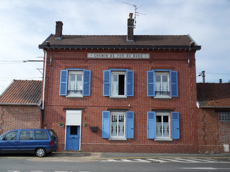 La gare de Landas et son enseigne « Chemin de fer du Nord ».