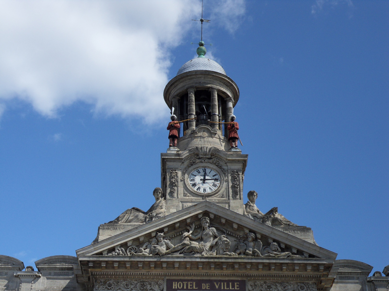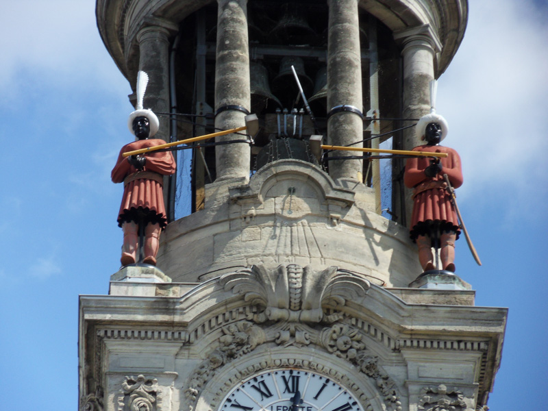 Le Campanile de Cambrai et Martin, Martine prêts à sonner l’heure.