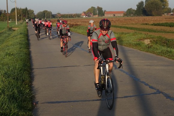 Parcours champêtre donc, traçant vers l’est pour rejoindre Mortagne du Nord (90 km) après une incursion en Belgique suivant en partie la « Route paysagère ». Retour par Saint Amand et Mons en Pévèle seule montée du jour.