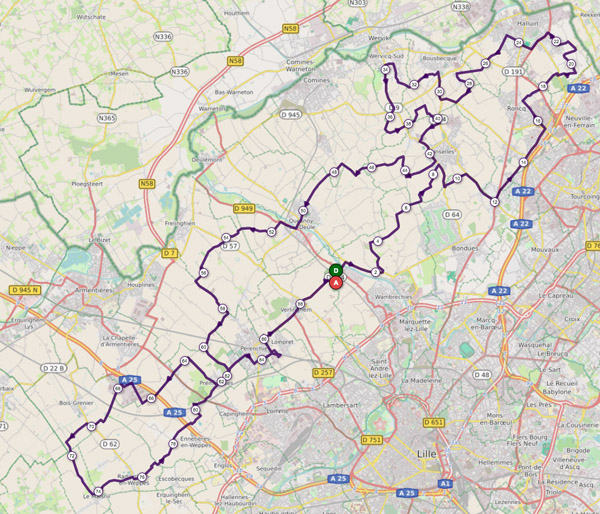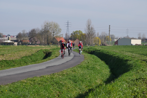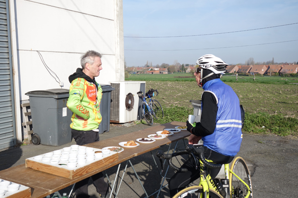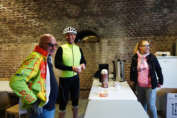 Dommage, car le parcours cheminant en direction du Mont de l’Enclus (que seuls les participants au 100 km atteindront) était plaisant, empruntant de petites routes sinueuses et vallonnées. Certes, les couleurs n’étaient pas au rendez-vous et mieux valait disposer d’un coupe pluie étanche. Mais quand même, un petit effort ne serait-ce que pour faire le 45 km aurait été le bienvenu en contrepartie des efforts faits par le club pour l’organisation de cette sortie.