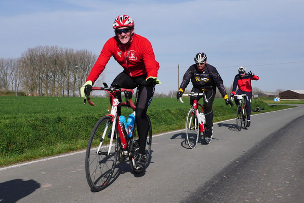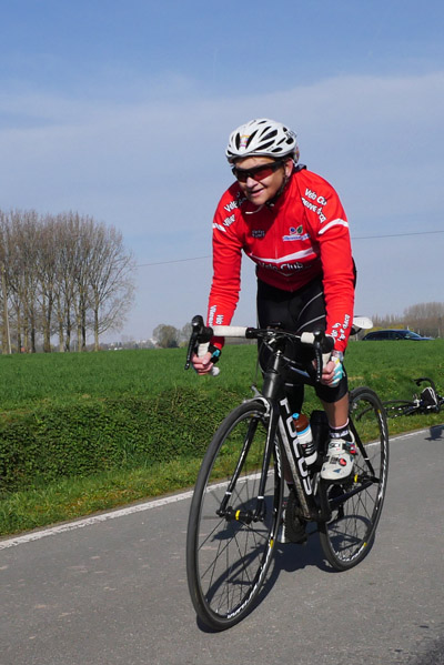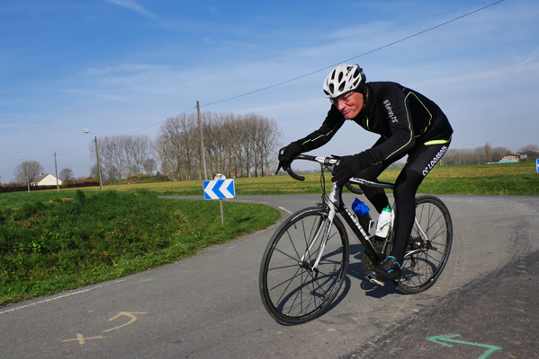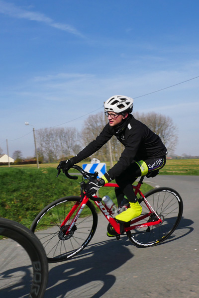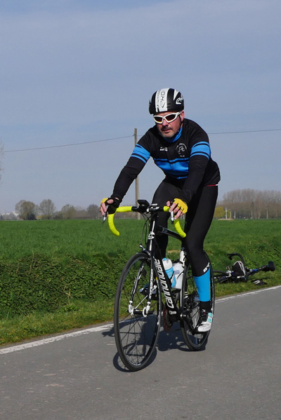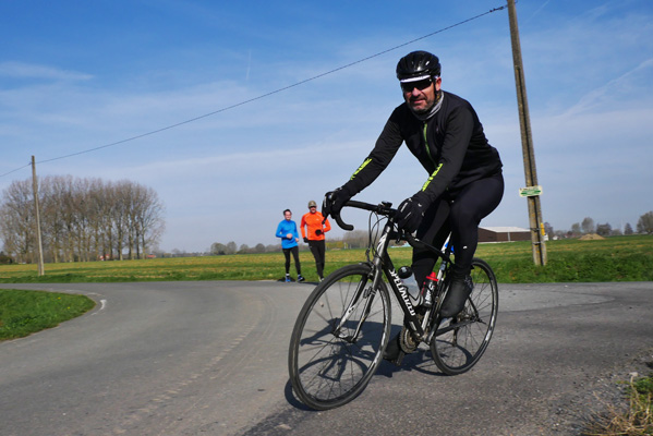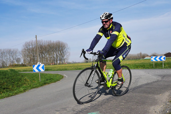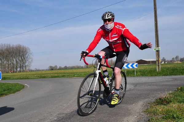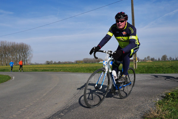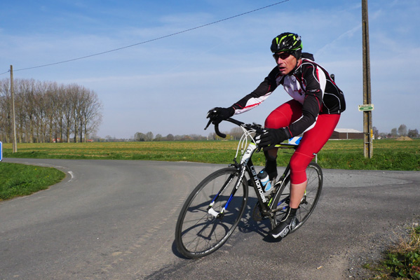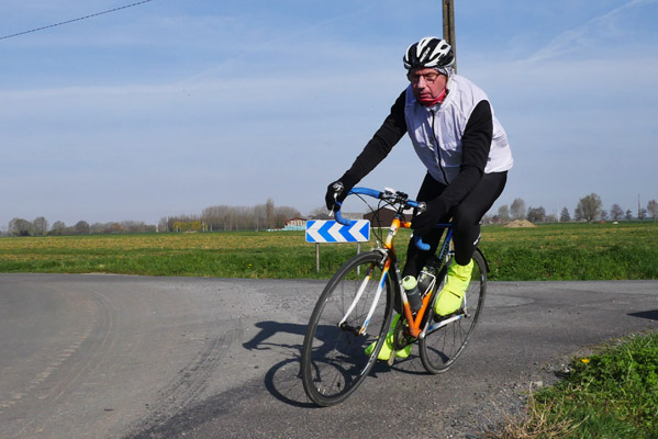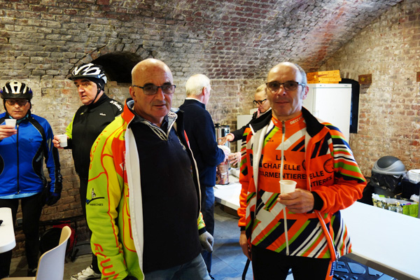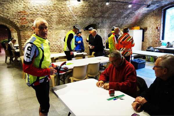 Dommage, car le parcours cheminant en direction du Mont de l’Enclus (que seuls les participants au 100 km atteindront) était plaisant, empruntant de petites routes sinueuses et vallonnées. Certes, les couleurs n’étaient pas au rendez-vous et mieux valait disposer d’un coupe pluie étanche. Mais quand même, un petit effort ne serait-ce que pour faire le 45 km aurait été le bienvenu en contrepartie des efforts faits par le club pour l’organisation de cette sortie.