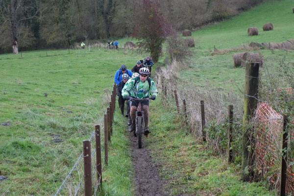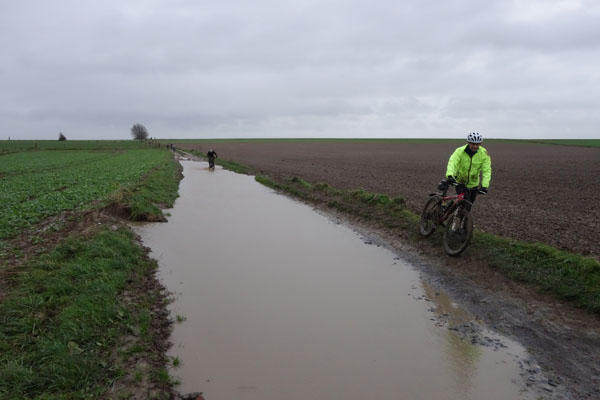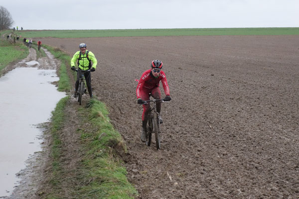 Je serai par contre assez rapide photographier les cyclos de Leers alors que je m’apprêtais à repartir. Le vent froid n’incitait pas à attendre trop longtemps. Dommage, un peloton me doublera peu de temps après mon redémarrage.