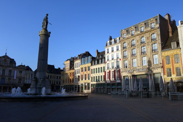 Pour ma part je rejoins la Grand Place encore déserte pour saisir les premiers partants. La déesse se chauffe le dos au soleil.