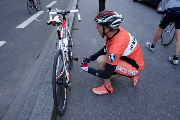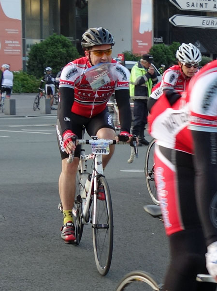 Elle aura été également un bon cru pour les organisateurs qui annonçaient plus de 4000 participants. Rançon du succès, on ne se sentira pas vraiment seul pendant les quarante premiers kilomètres. Les organisateurs avaient pourtant opté cette année (suivant en cela le conseil prodigué sur ce blog l’an dernier?) pour un départ cadencé. Plusieurs pelotons avaient d’ailleurs anticipé le départ officiel de plusieurs minutes. Malgré ces dispositions, le cheminement avait des allures de départ en week-end prolongé.