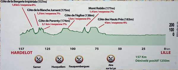 La circulation finira par devenir moins dense et on arrive sans peine à Aire sur la Lys premier ravitaillement. Ce premier tronçon constituait une mise en jambes, les reliefs arrivant peu après.