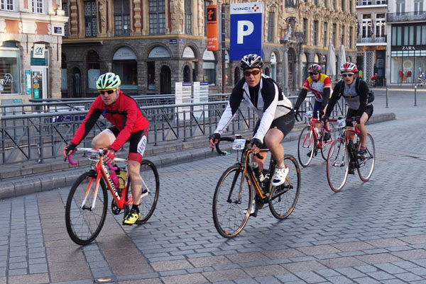Les Cyclos d’Ascq arrivent, meneur à sifflet en tête. Ca rigole pas.