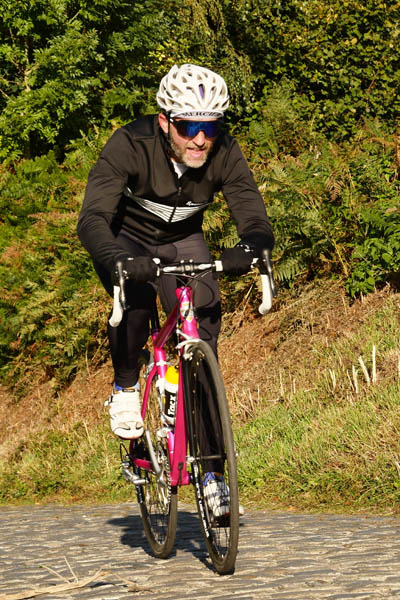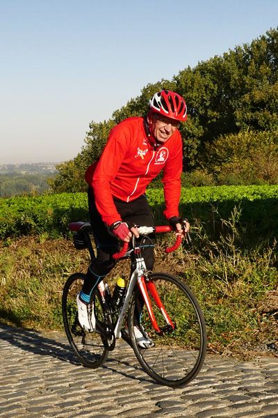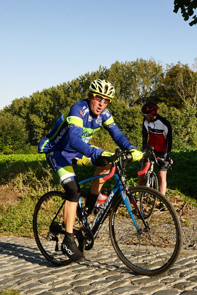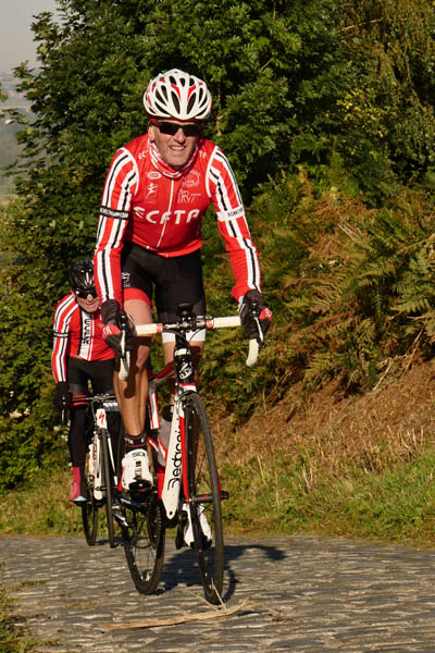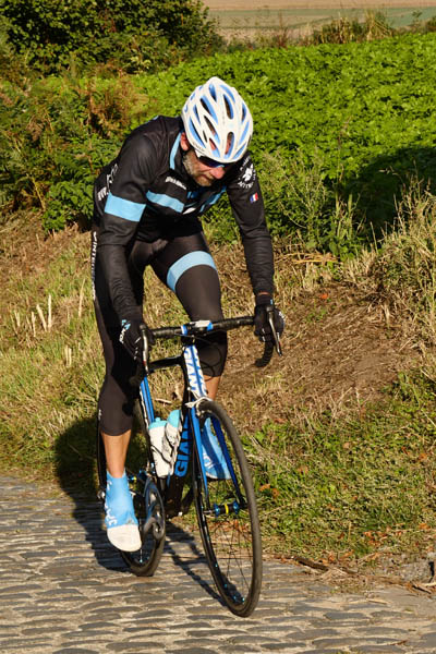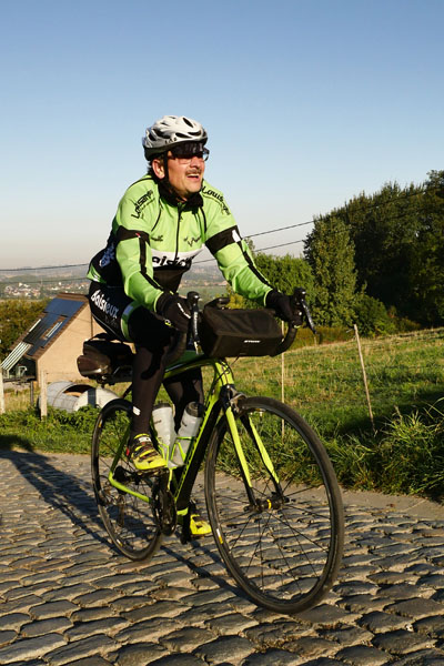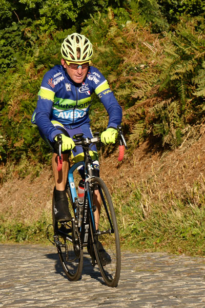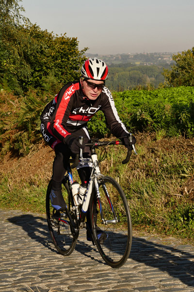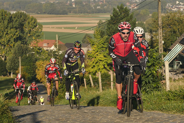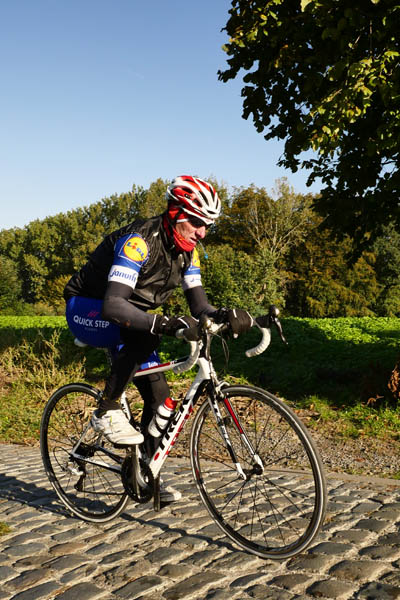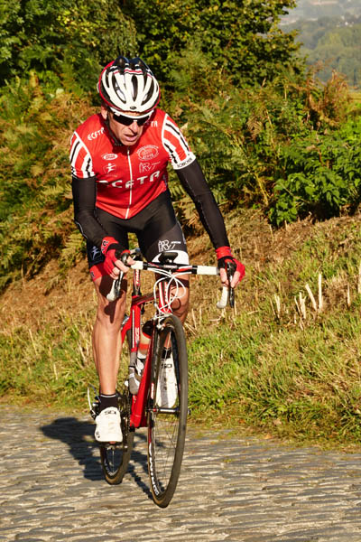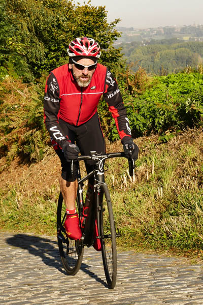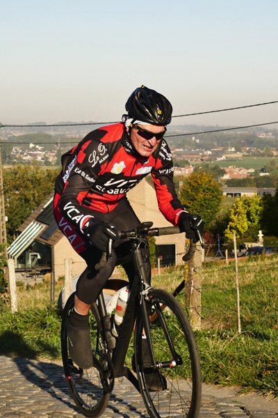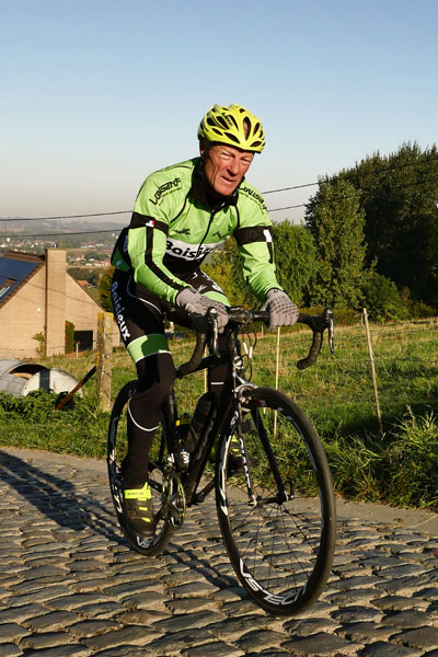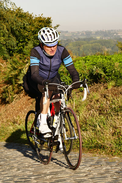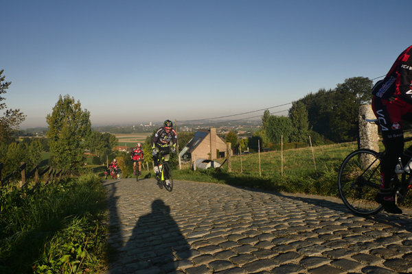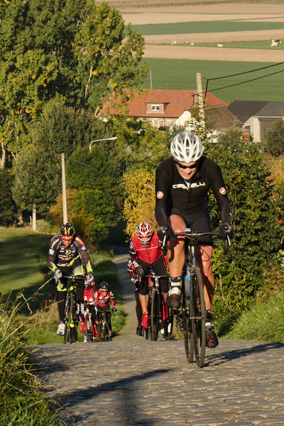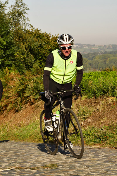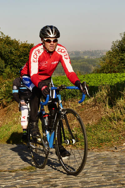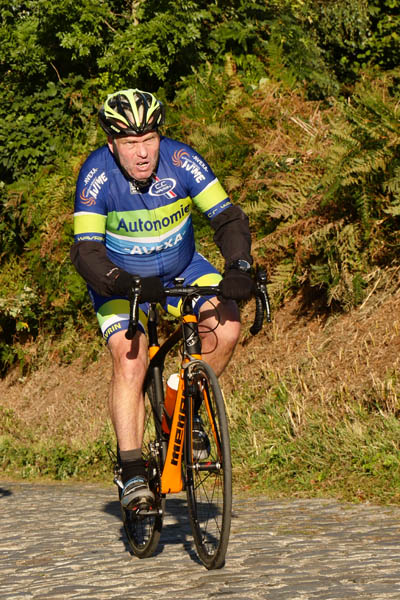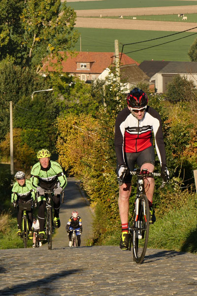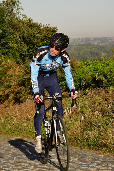Ce fut, vous l’avez compris, la distance de mon choix au vu de l’alléchant programme de côtes annoncé. Mont de l’Enclus et Mont Saint Aubert, communs au 85 et au 120, encadraient pour cette dernière distance quelques belles pentes. Kwaremont, Paterberg, Koppenberg s’enchainaient avec leur chaussée pavée. Des trois, le dernier fut le plus meurtrier la difficulté liée à la pente étant majorée par un pavement accidenté. Beaucoup dont je fus, mirent pied à terre dans le troisième quart. Muziekberg, Gauquier et Grinquier proposaient des pentes plus longues mais moins raides et surtout goudronnées.
