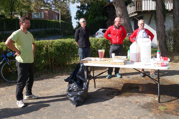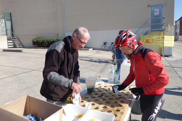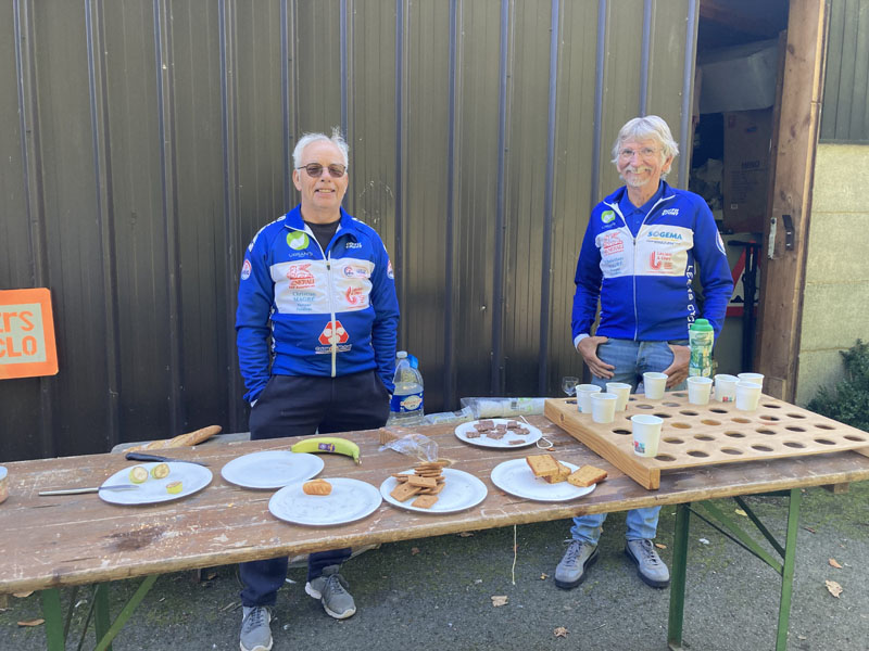 Ravitaillement d’Ellezeles. David et Robert font équipe comme sur route.