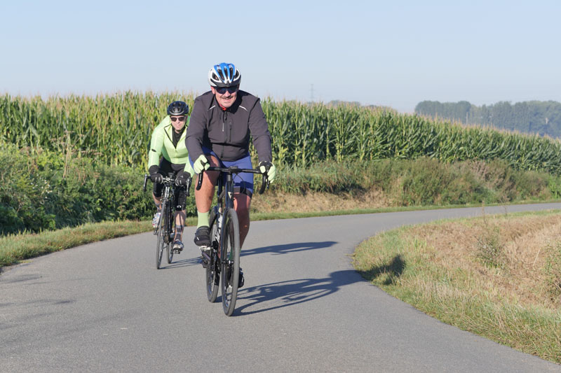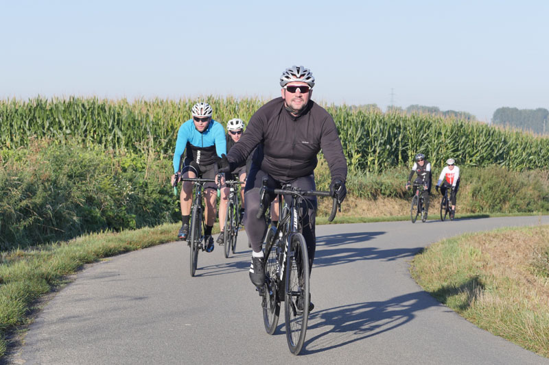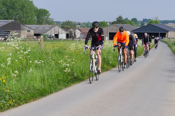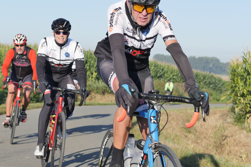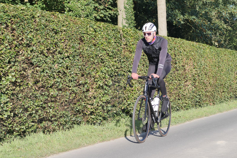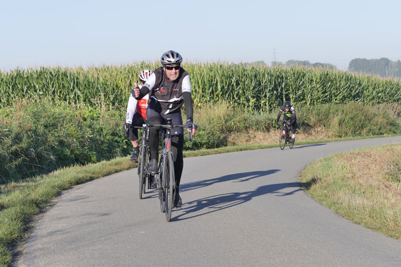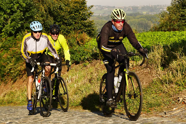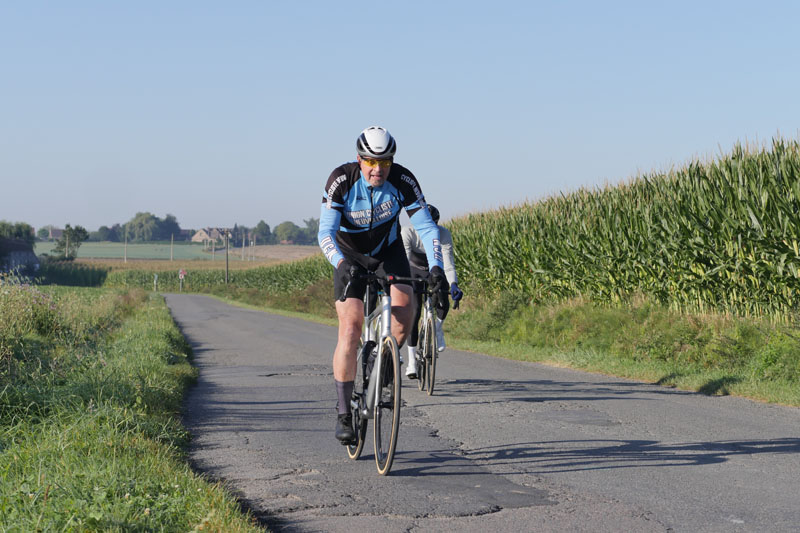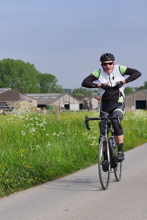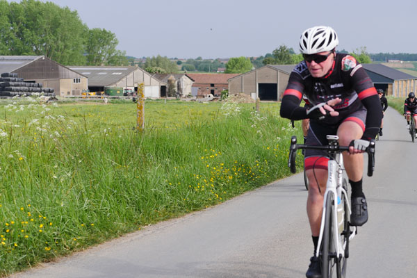 Compte tenu des écarts de température attendus, il fallait choisir entre frissons et sudation. J’optai pour les premiers avec un habillage en couches multiples, un peu juste pour affronter la température matinale mais qui me permit de rouler en maillot à manches courtes en fin de matinée. Il me fallut néanmoins attendre le Paterberg pour que pieds et mains retrouvent une température de confort.