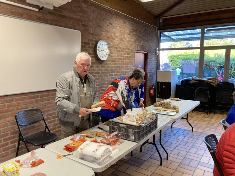 Il leur faudra attendre le dernier participant du 120 km, qui a quitté le ravitaillement d’Elezelles à 12h40. Il était 13h20 à l’horloge de mon appareil photo.