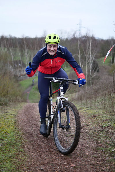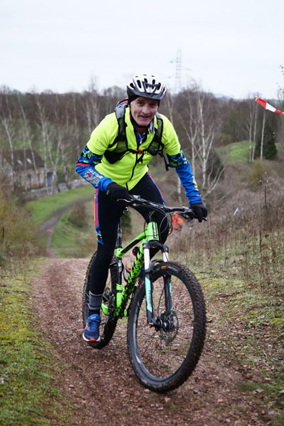La photographe à visage découvert, dans une montée qui pique un peu les jambes après mon arrêt prolongé au ravitaillement.