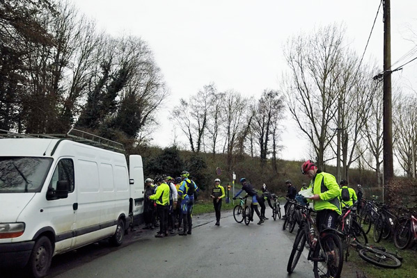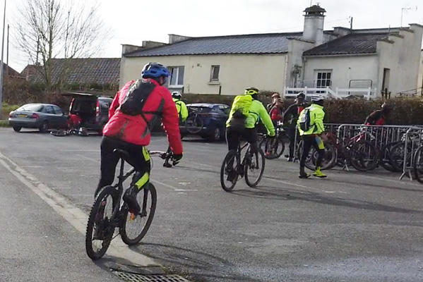 Une fois n’est pas coutume dans mes reportages VTT, quelques cyclos route croisés au départ.