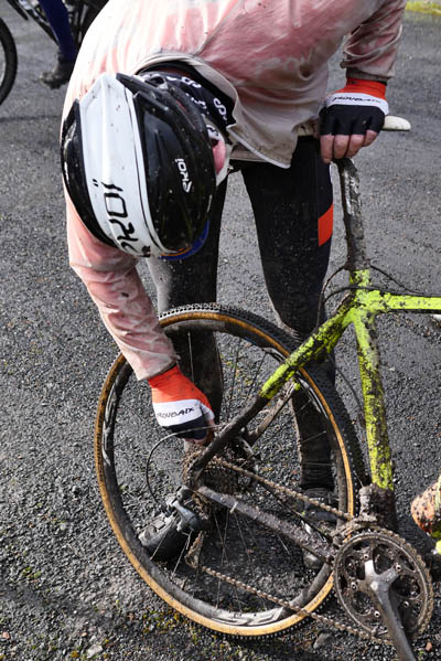 Le ravitaillement. Je complète la pression de mon pneu et ne sortirai pas l’appareil photo.