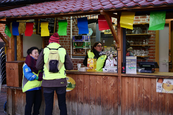 A l’arrivée, soupe, boisson et surtout sandwich saucisse-choucroute. Vaut le détour.