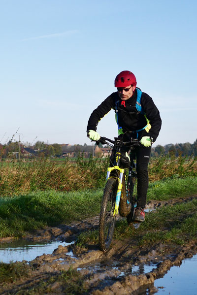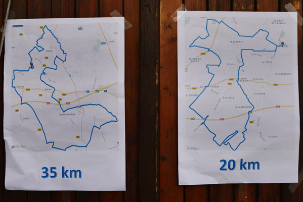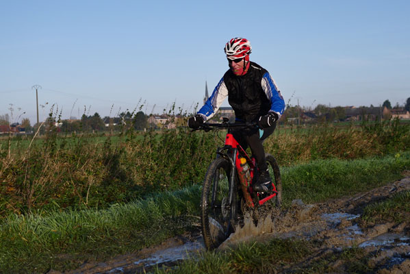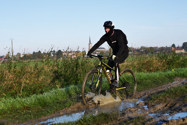 Des deux boucles, je ne ferai que celle de 35 km, m’étant en partie trop attardé pour prendre des photos mais aussi ayant participé à l’assistance d’un cyclo ayant fait une chute sévère au moins quant à ses conséquences. Sinon, comme souvent, le terrain, un chemin boueux, ne présentait pas de difficulté particulière.