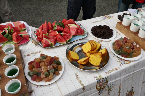 Sandwichs en préparation et une belle palette de couleurs primaires.