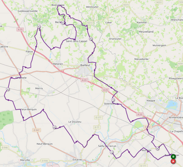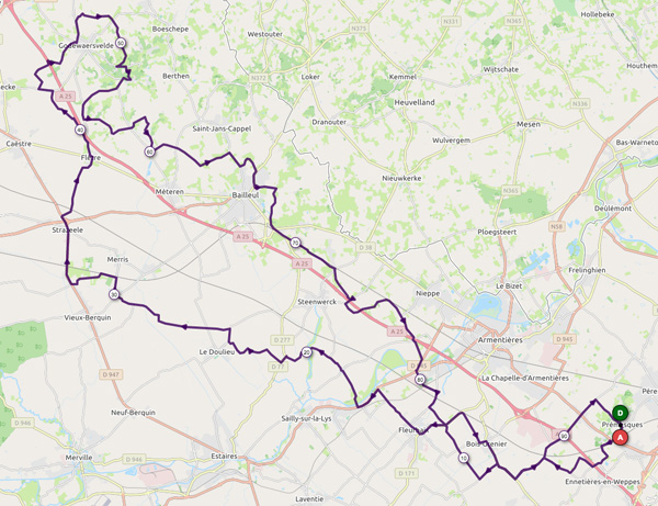 Brevet toujours aussi plaisant que ce Mémorial Freddy Lemaire, proposé par l’Elan Ploegsteert, même si le tracé évolue peu d’une année à l’autre. Parcours animé et sinueux dans le Heuveland, puis autour du Mont Rouge et du Mont Noir (pour le 90km), empruntant de petites routes.