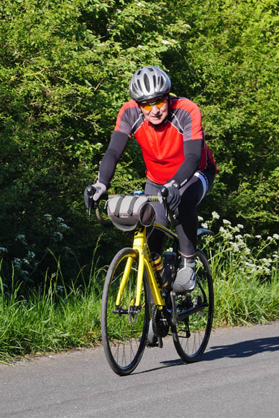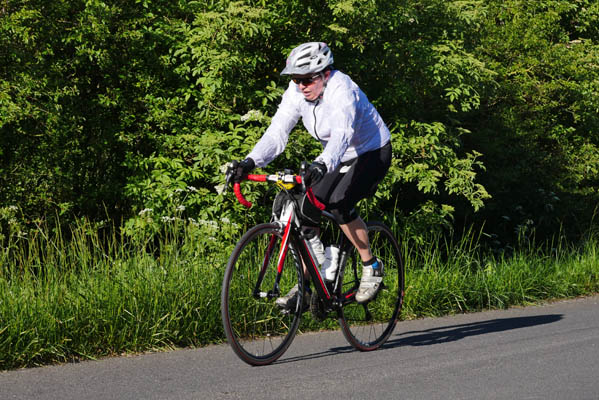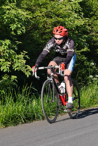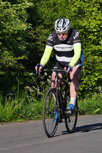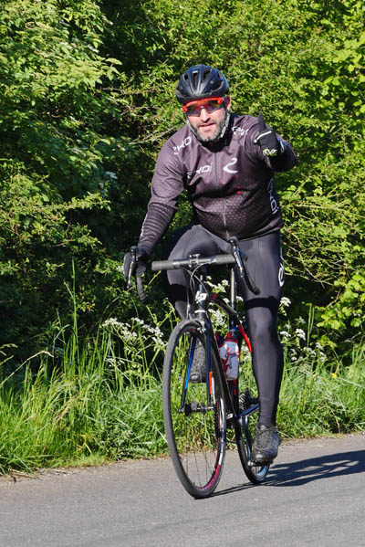 Côté photos la lumière était idéale, mais tous ceux que j’ai photographiés ne se retrouveront pas. Voulant faire des images procurant davantage l’impression de vitesse, j’ai tenté des prises de vue avec une vitesse lente, ce qui, quand c’est bien fait, donne un sujet net et un fond flou. Cela demande de la pratique et comble du comble, j’ai oublié de changer mes réglages avant de procéder à des prises de vues de face qui elles nécessitent une vitesse rapide d’obturation.