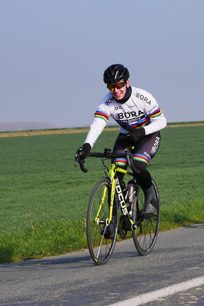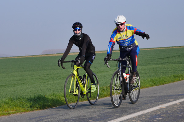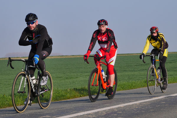 Est-ce cette vététiste qui mène le train pour ces trois gaillards du CC Wavrin ou sont-ils sur le point de la rattraper ? Je vous laisse le soin d’imaginer la fin de l’histoire qui vous plaira.