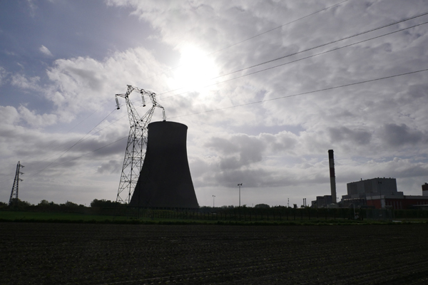 … où un secteur pavé passe non loin de la centrale de Bouchain et de son imposante tour aéro-réfrigérante de 125 mètres de haut.