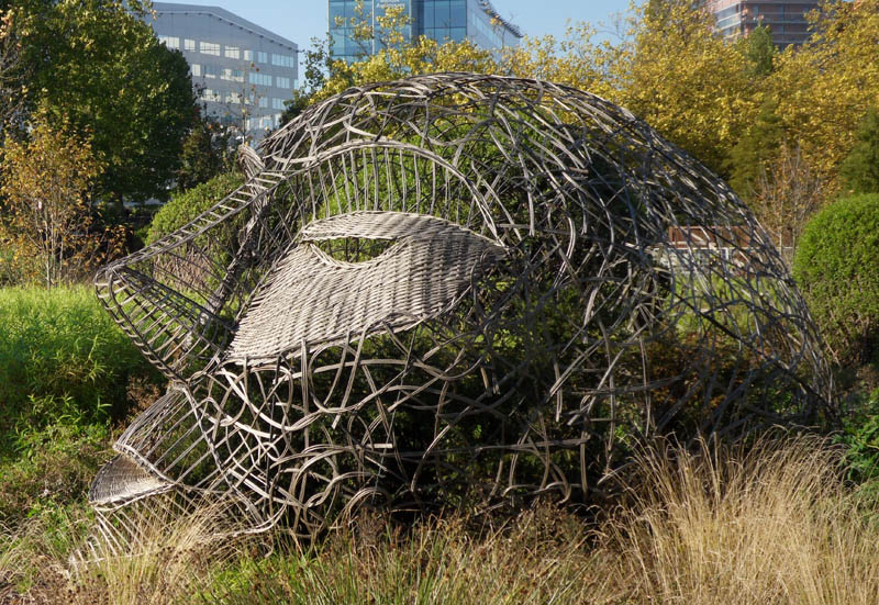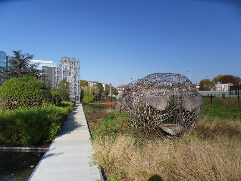 Après un petit tour vers la Deûle, et quelques photos de péniches et de canards (et non de caniches peinards), direction le Jardin des géants à deux pas de Lille Europe. C’est un très bel endroit que je connaissais pas, alliant végétation, eau, constructions métalliques, statues.