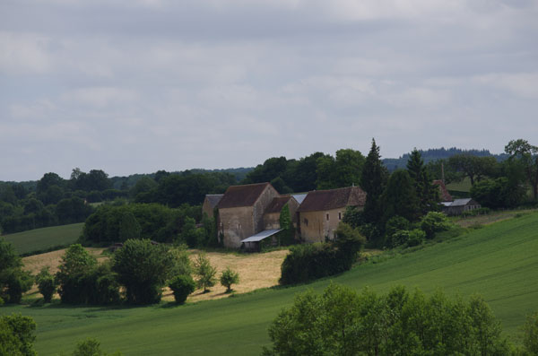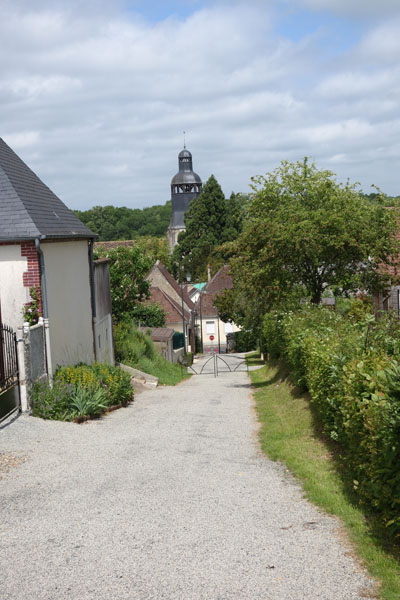 Au bas de la côte se profile le clocher de l’abbaye de Thiron Gardais.