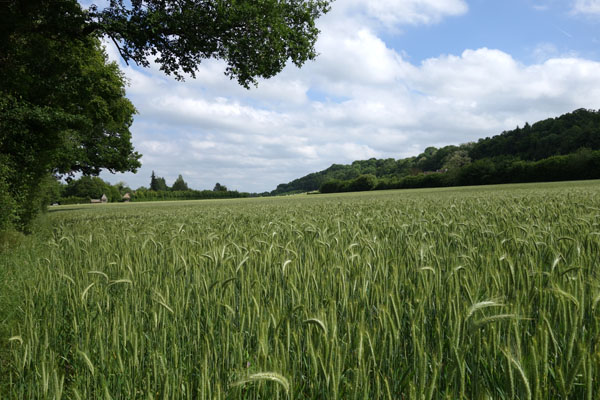 Une fois passé Barjouville, on suit une voie partagée qui se transforme en piste cyclable jusque Fontenay sur Eure. Pratiquement pas de dénivelé sur ce plateau ou les champs de céréales s’étendent à perte de vue. La progression n’en est pas aisée pour autant car le vent de face souffle en rafales. Comprenant assez vite que la bataille est inégale et que je m’épuiserai rapidement à vouloir tenir une allure à tout prix, je mouline et dépasse difficilement le 15 km/h à certains endroits. Le vent est froid et je supporte maillot à manches longues, coupe vent et tour de cou.