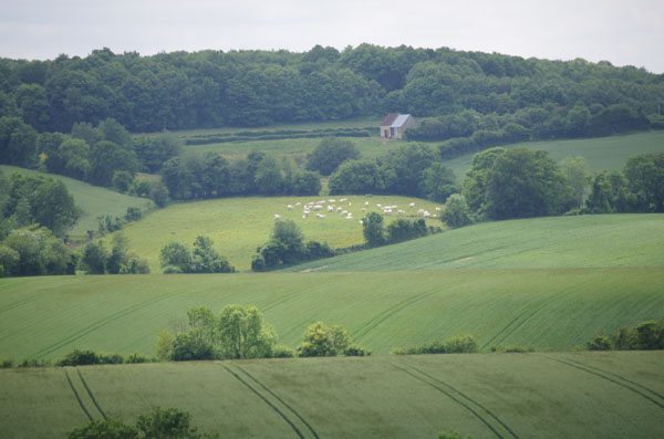Je repars toujours vent debout et n’aurai finalement pas l’énergie de rejoindre Fraze pour déjeuner. Je profiterai d’une allée conduisant à l’église de Montigny le Chardif pour casser la croûte et reprendre des forces.