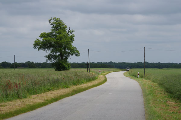 En dehors des voies vertes, la Véloscénie suit de petites routes à faible densité de circulation.