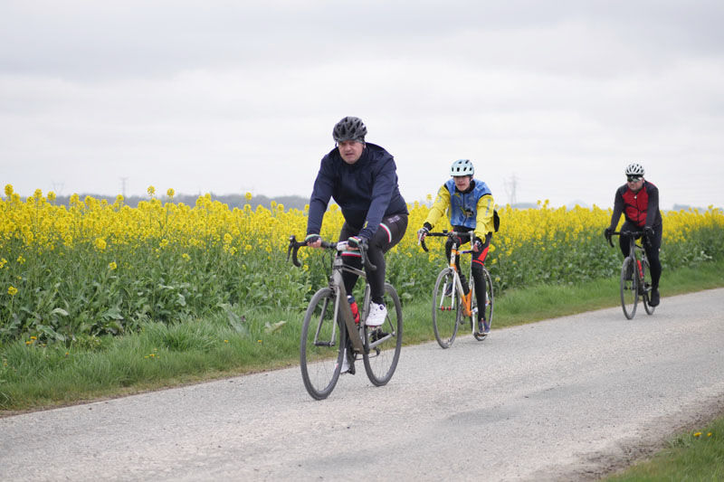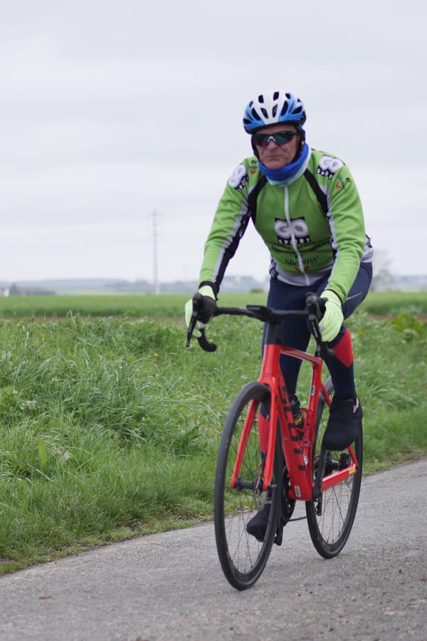 Quelques photos pour rendre compte de cette sortie champêtre. Un voile atmosphérique qui ne disparut que tard dans la matinée n’incitait pas aux photos de paysages. Restaient les cyclistes.