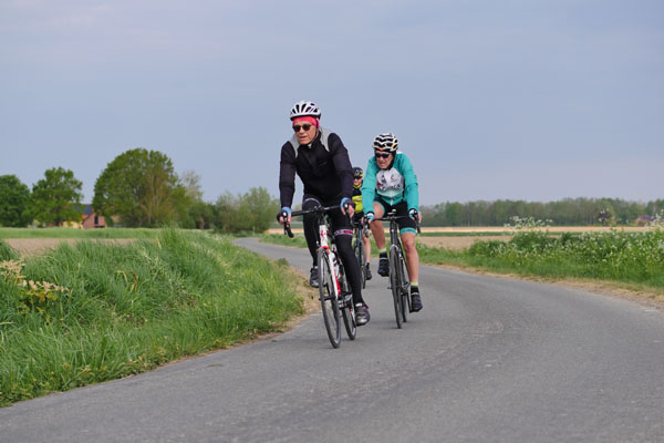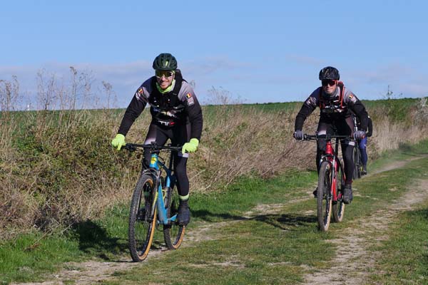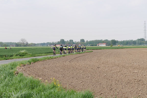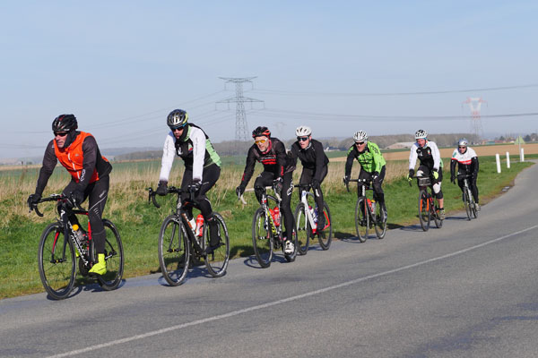 Printanière elle le fut également pour les organisateurs qui durent se conformer au rythme biologique de Dame Nature et se virent refuser la traversée de zones de nidification sur les parcours VTT, nous privant entre autres de passages en sous-bois. Restaient secteurs pavés, voies vertes et chemins agricoles. Le terrain étant particulièrement sec, le parcours était bien roulant malgré un vent du nord soutenu.