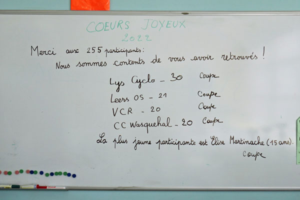600 cyclos et vététistes firent le déplacement, source de désappointement pour les organisateurs au regard de la fréquentation antérieure mais ce nombre rendrait jaloux plus d’un club.