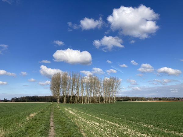 Partis sous un ciel plutôt couvert, un vent soutenu vint rapidement dégager les nuages. Champs de colza et vertes pâtures offraient de plaisants contrastes.