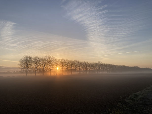 Lever de soleil prometteur sur la route d’Orchies conduisant à la Printanière organisée par le CC Orchies