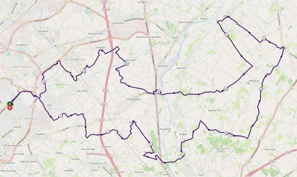 Parcours animé par de fréquentes bosses, même si nous évitâmes le sommet du Mont Saint Aubert.