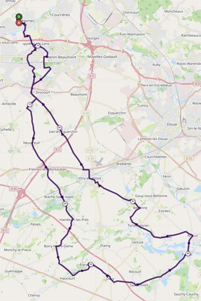 Non qu’il ne le fut pas, mais je n’ai pu en juger que partiellement en raison d’une erreur d’aiguillage qui me fit, à Biache Saint-Vaast, emprunter à tort le retour du 40 km.
