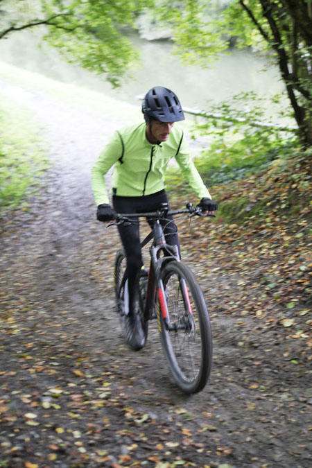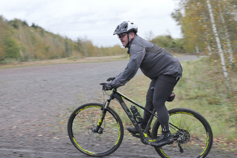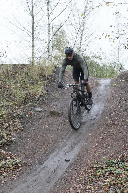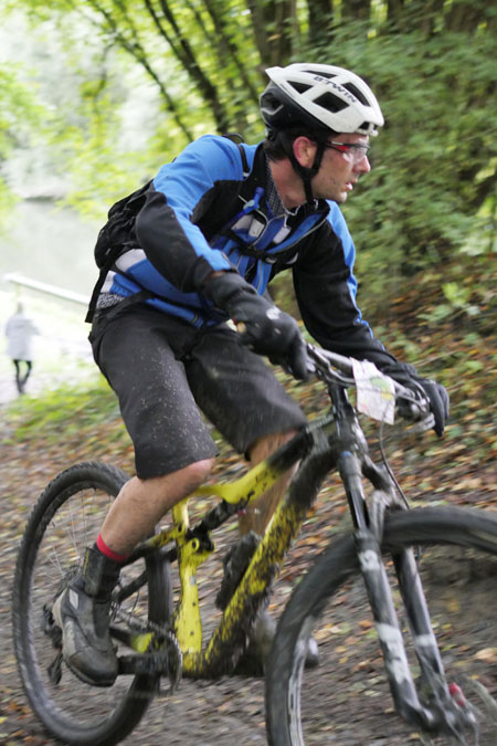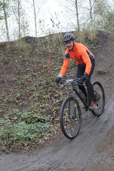 Si l’air était sec, il en allait différemment du sol franchement gras et boueux par endroits dans les parties planes, de quoi bien encrasser les crampons et glisser dans les montées. Des montées, il y en avait, jamais bien longues mais suffisamment raides pour obliger à mouliner sérieusement. A cela, s’ajoutait un tracé sinueux appelant de fréquentes reprises. Bref du VTT.