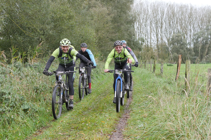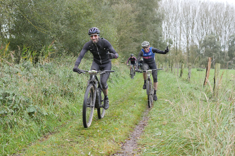 Départ en ligne à 8h30, ce n’est pas une course mais, franchement gamins, nos amis vététistes font comme si.