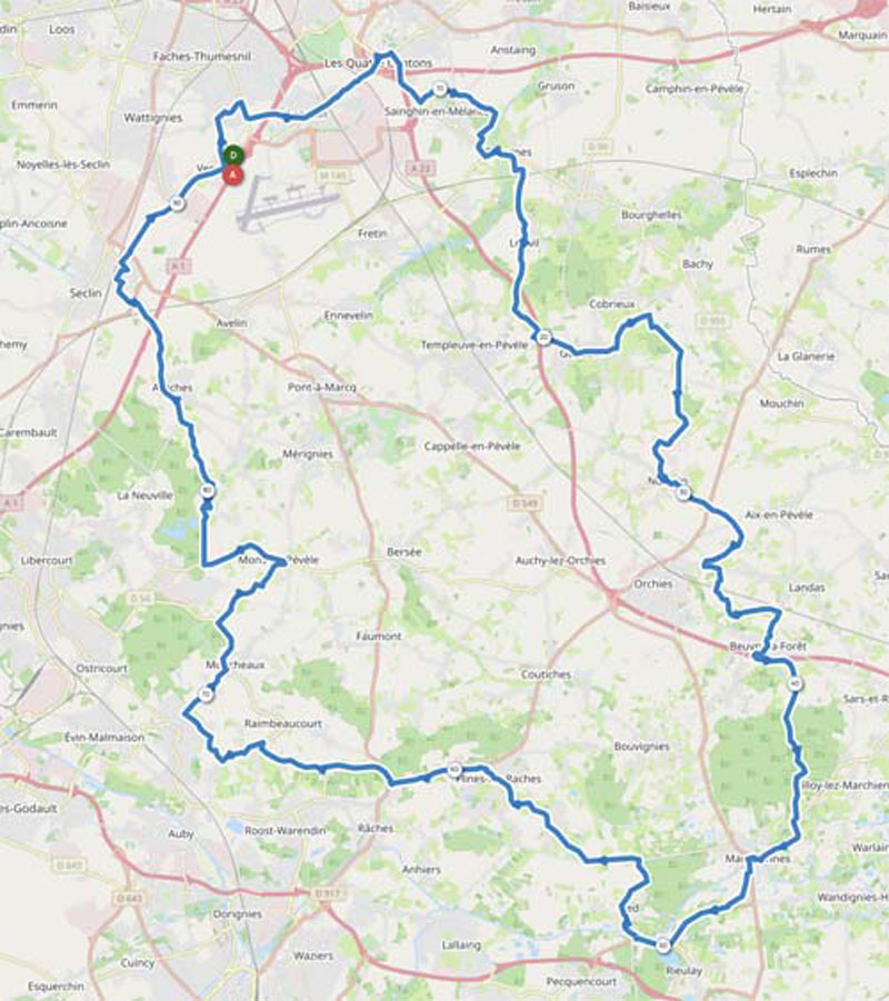 Orchies et sa gare n’étaient pas trop loin et moyennant quelques gonflages et une progression en danseuse tout le poids sur l’avant, je parvins à rejoindre cette dernière et prendre un TER.