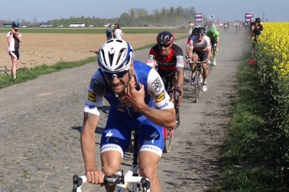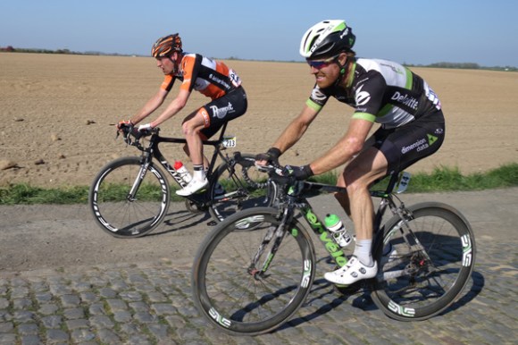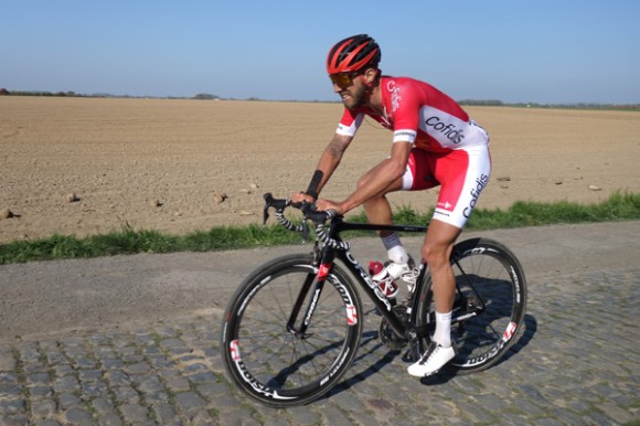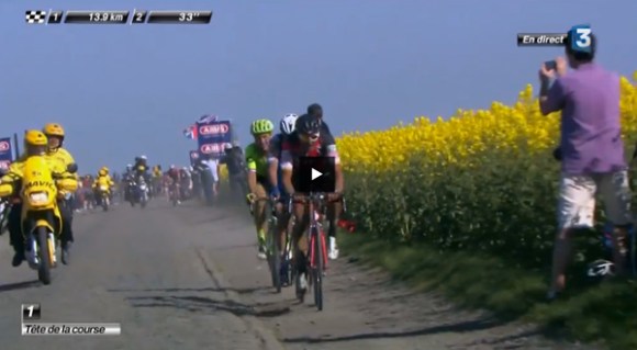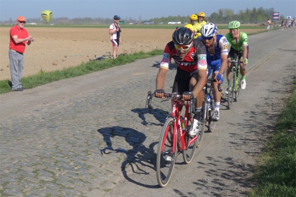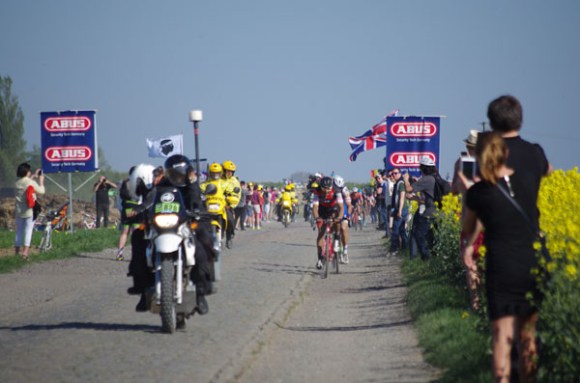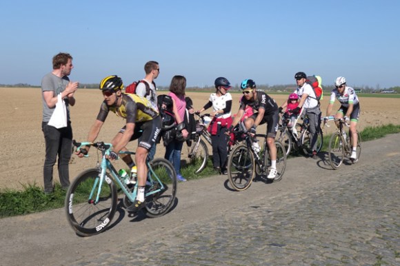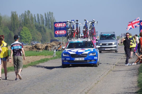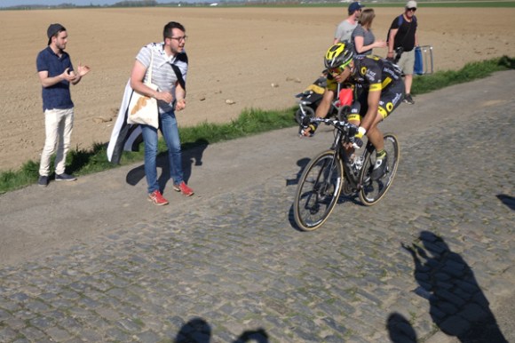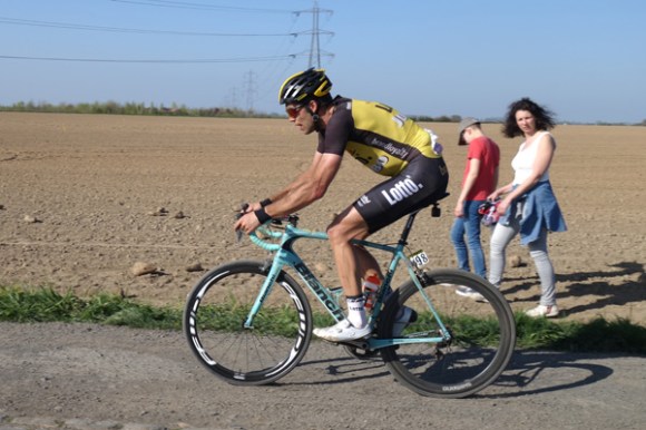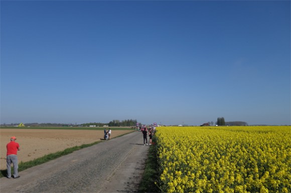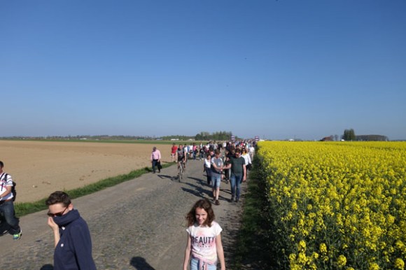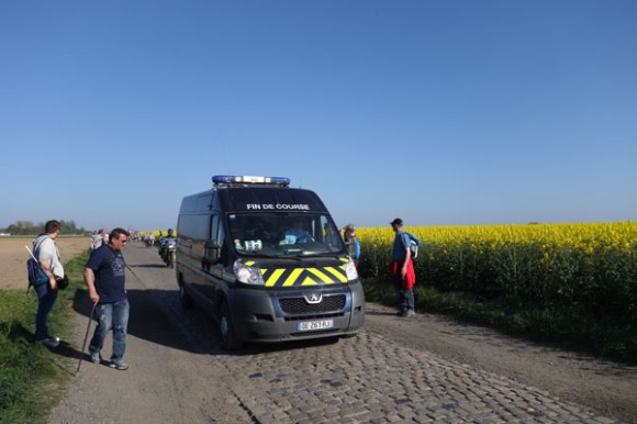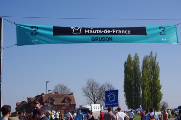 Départ de Saint Omer sur un tronçon pavé mais qui n’a rien de vraiment méchant.