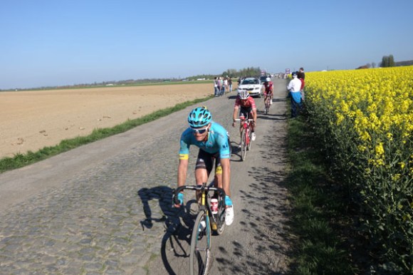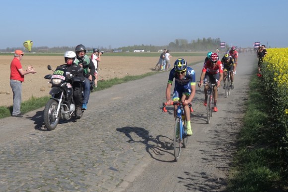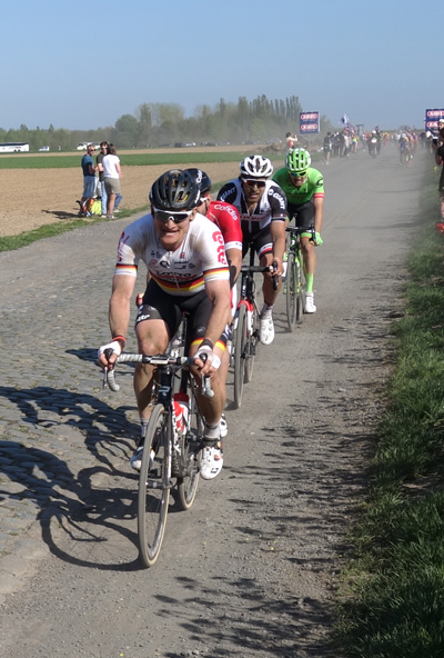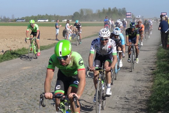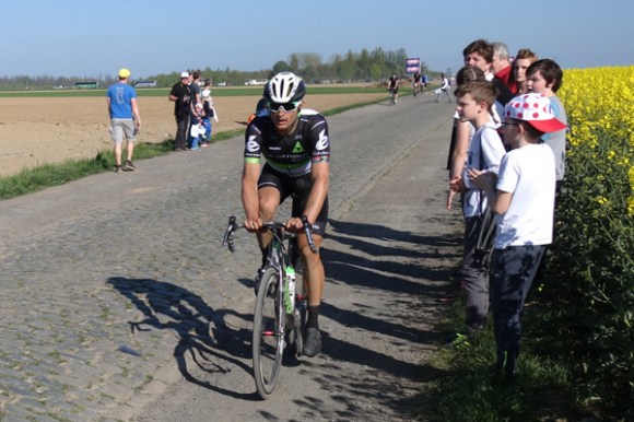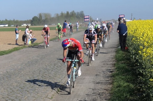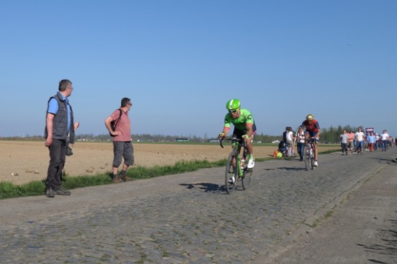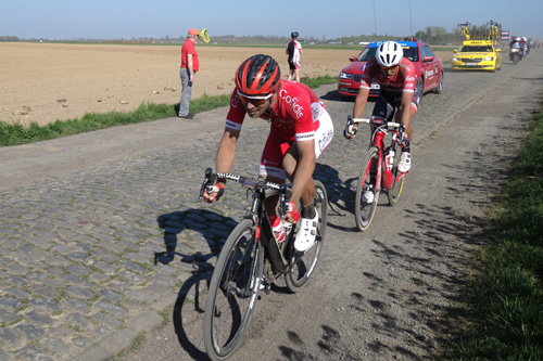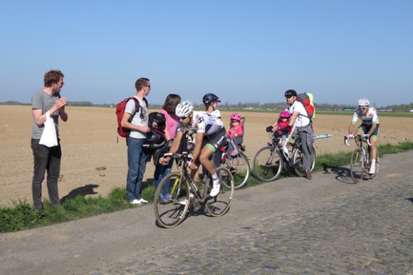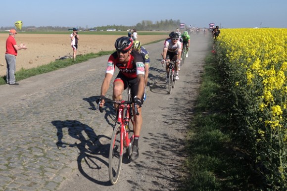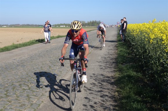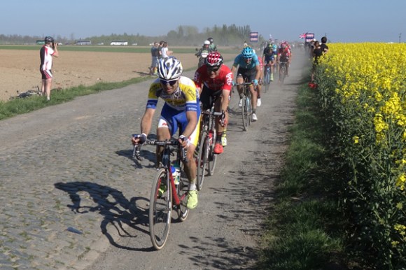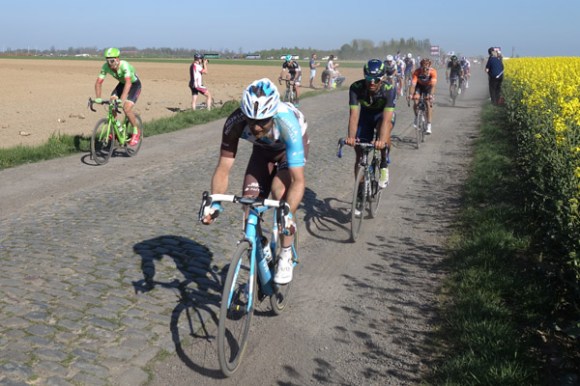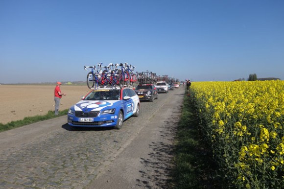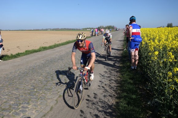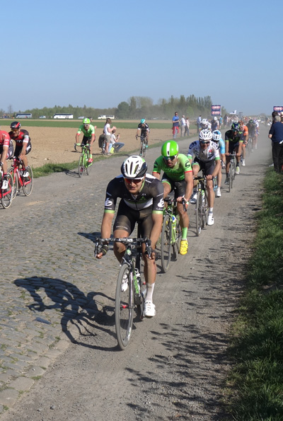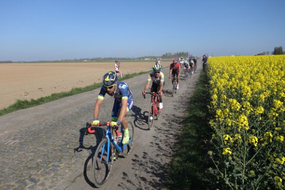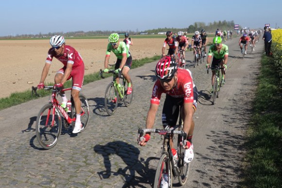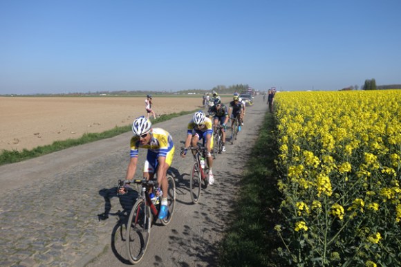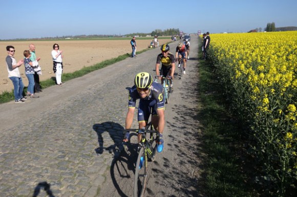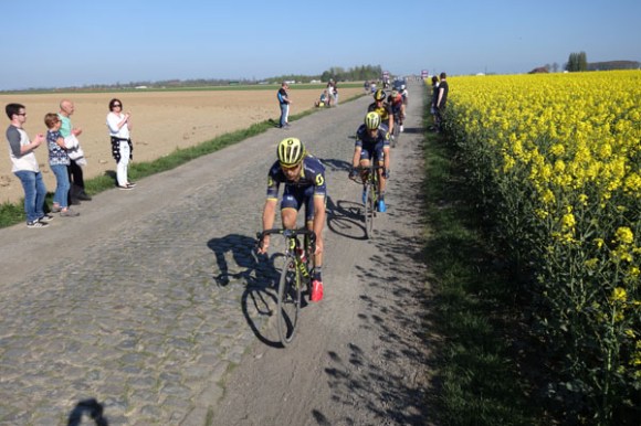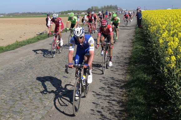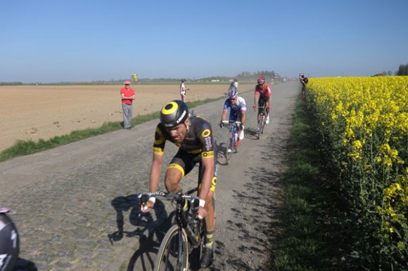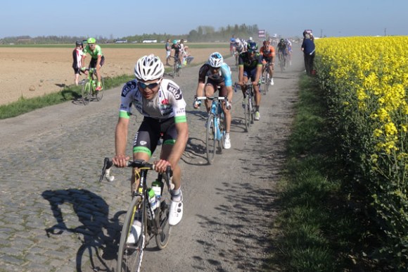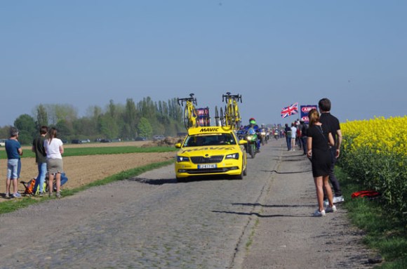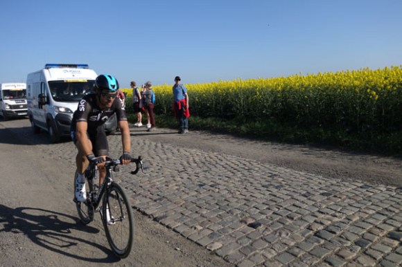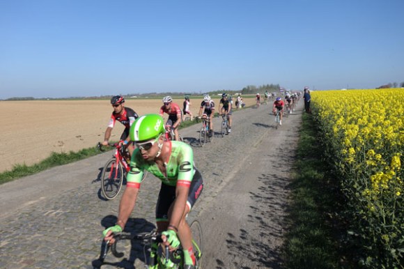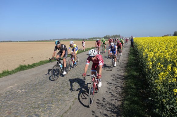 Départ de Saint Omer sur un tronçon pavé mais qui n’a rien de vraiment méchant.