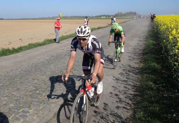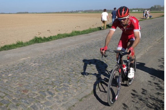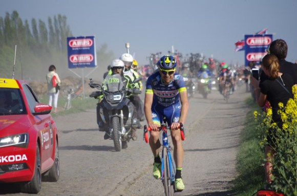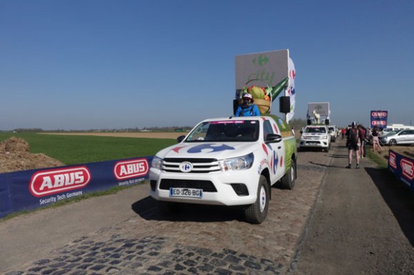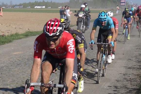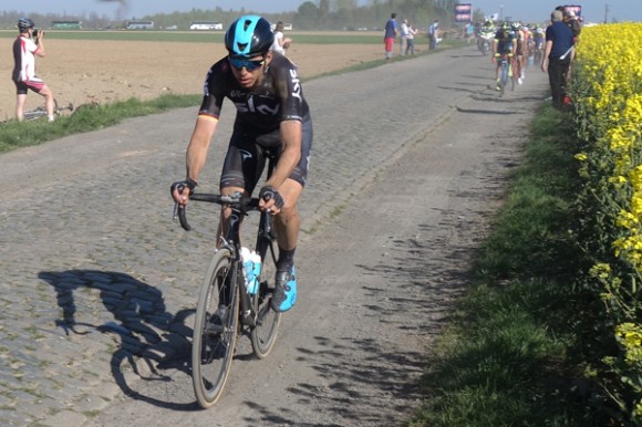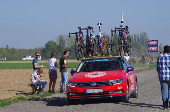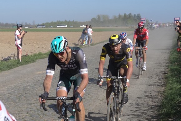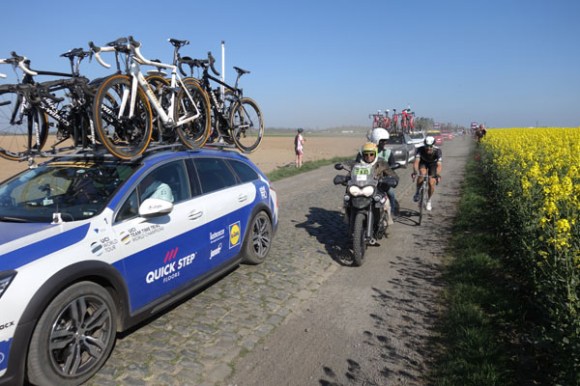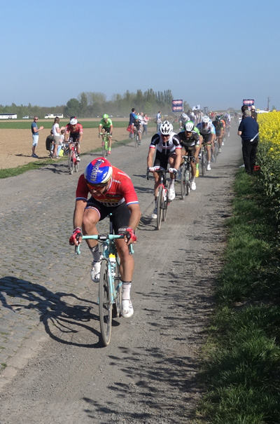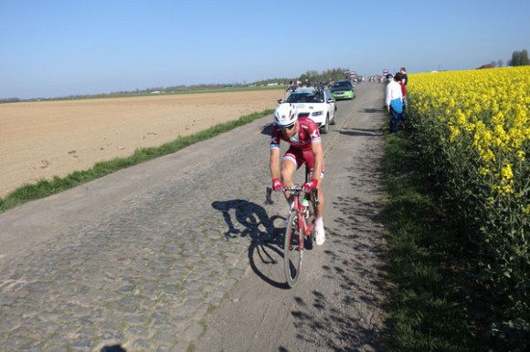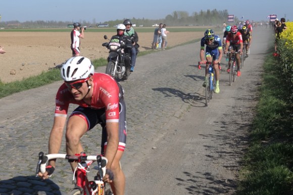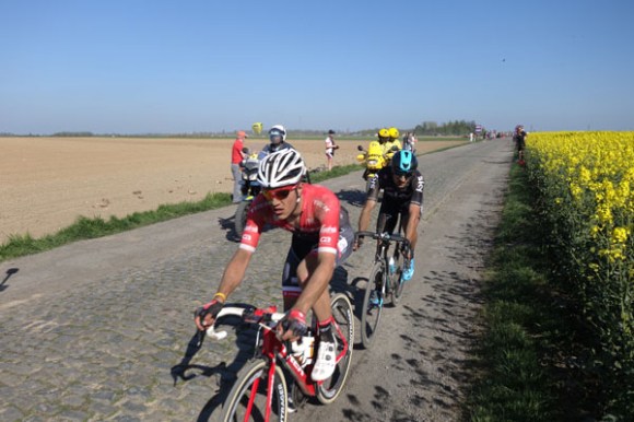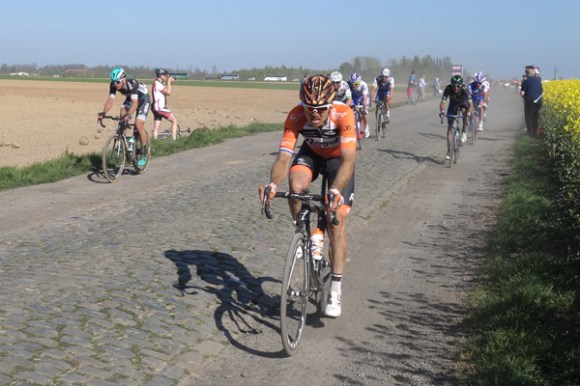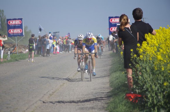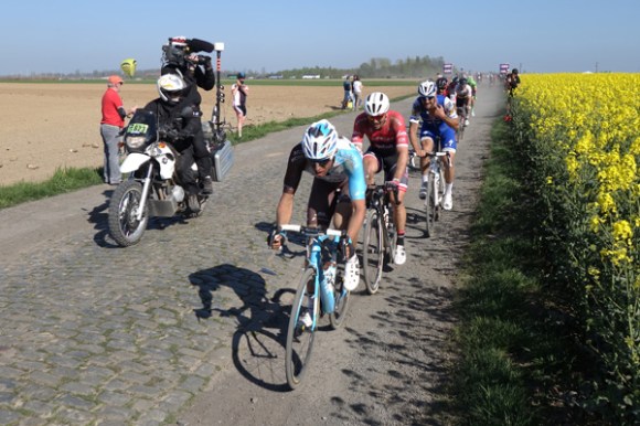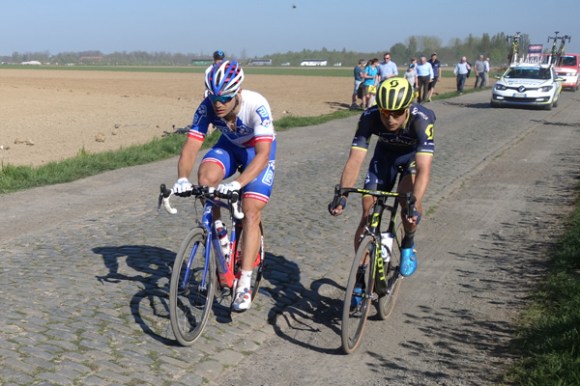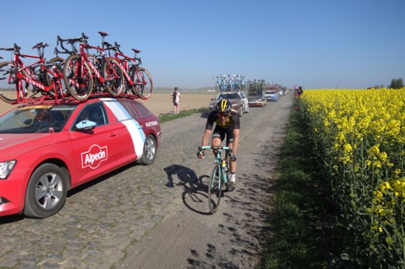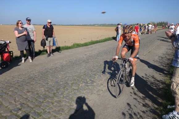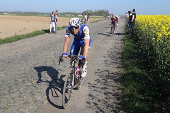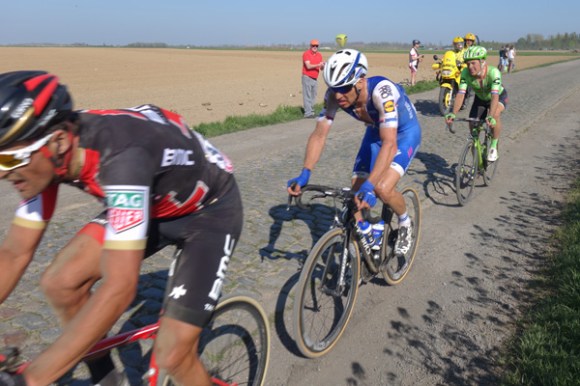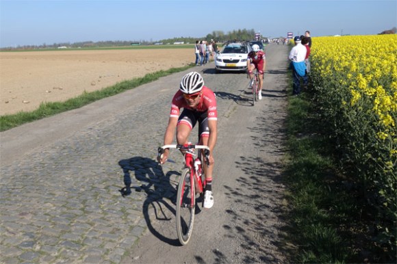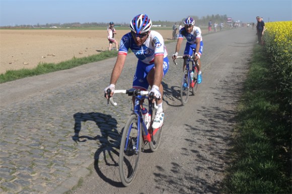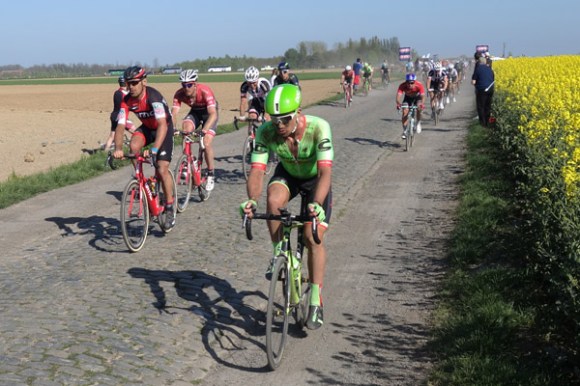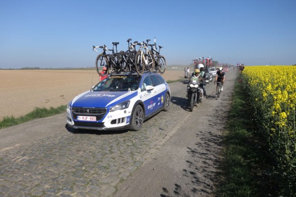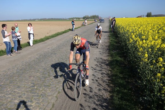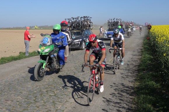 Départ de Saint Omer sur un tronçon pavé mais qui n’a rien de vraiment méchant.