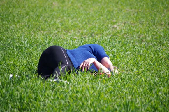 Pas d’inquiétude pour ce cycliste qui n’a pas chuté mais s’étire avant d’affronter l’ultime tronçon.