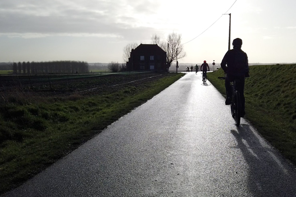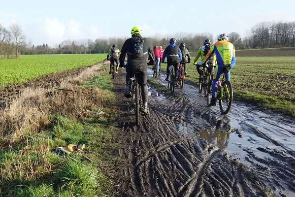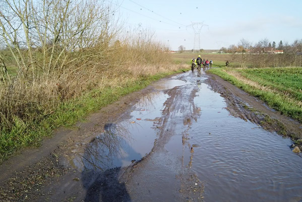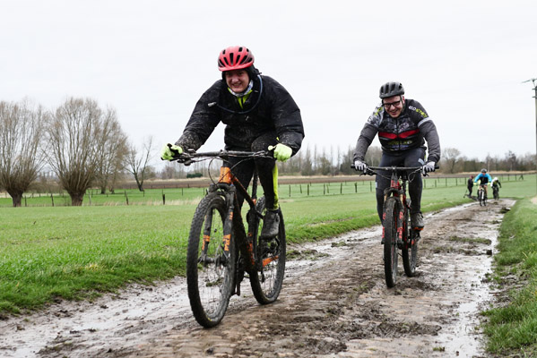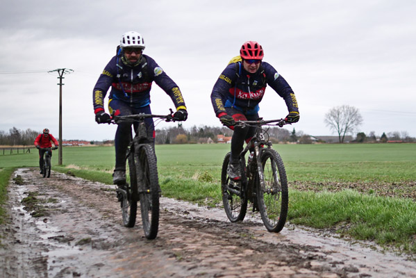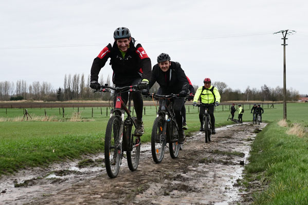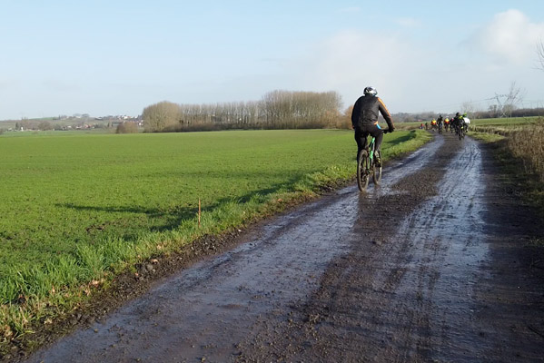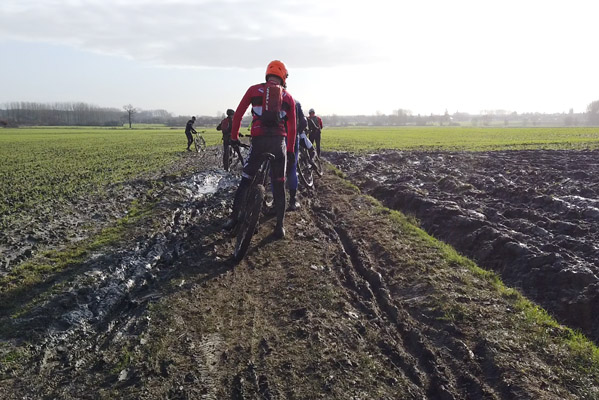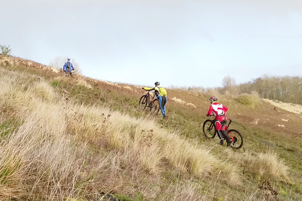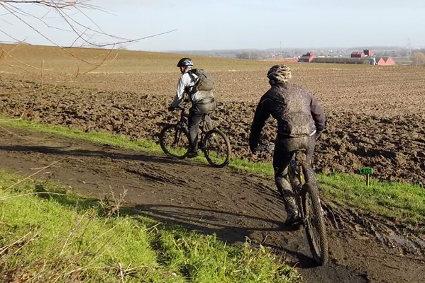 Dommage pour les absents, car les parcours proposés comportaient de long passages en terril très ludiques. Le sol bien humide rendait certains tronçons plutôt sportifs et plusieurs montées se sont finies à pied la boue l’emportant sur le relief des pneus.